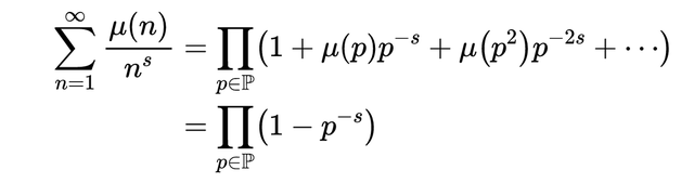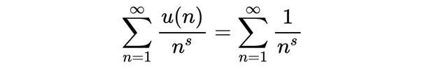 因为u是完全积性的,如果我们在上面的公式中用u代替f,我们就可以得到黎曼ζ函数的欧拉积!