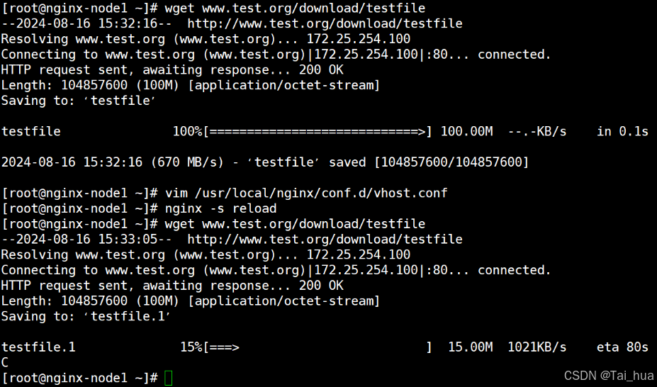 [root@nginx-node1 conf.d]# nginx -s reload#前后对比测试: