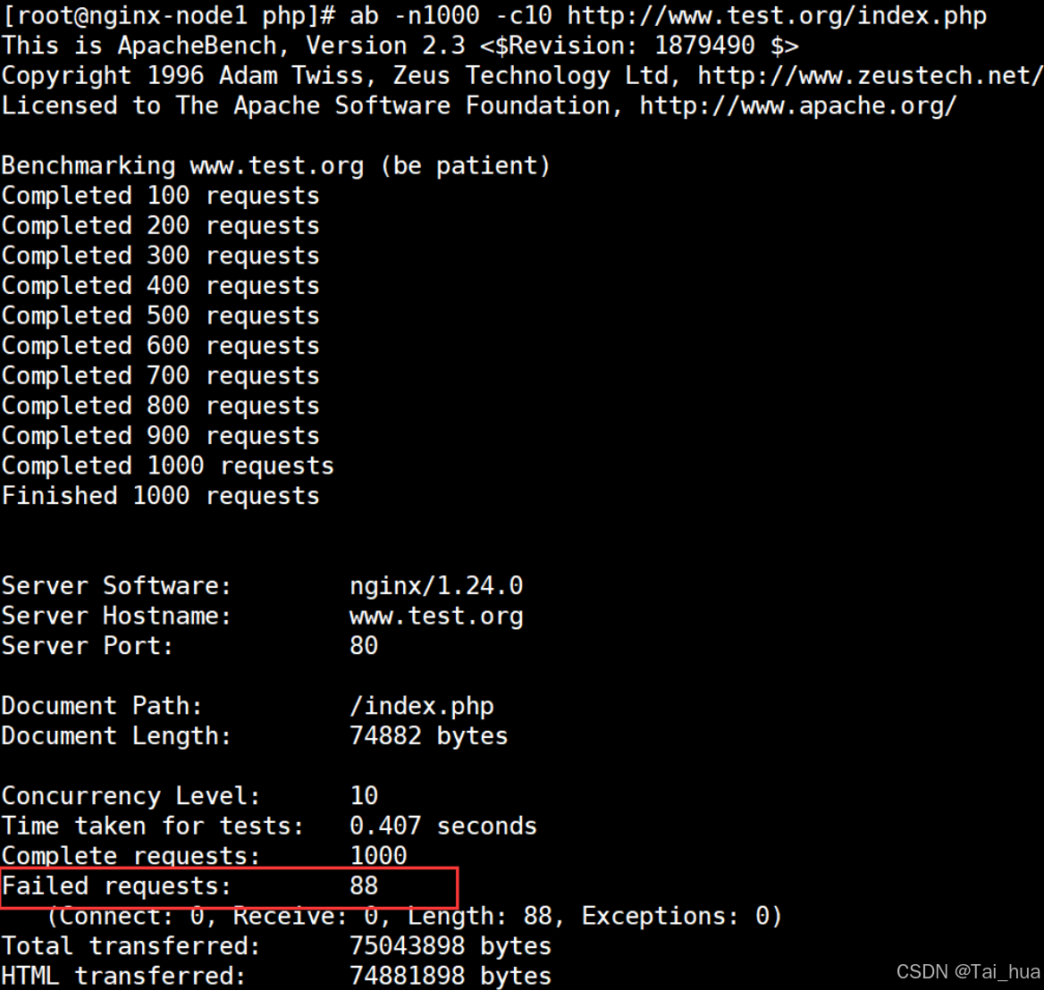 [root@nginx-node1 php]# ab -n1000 -c10 http://www.test.org/index.php