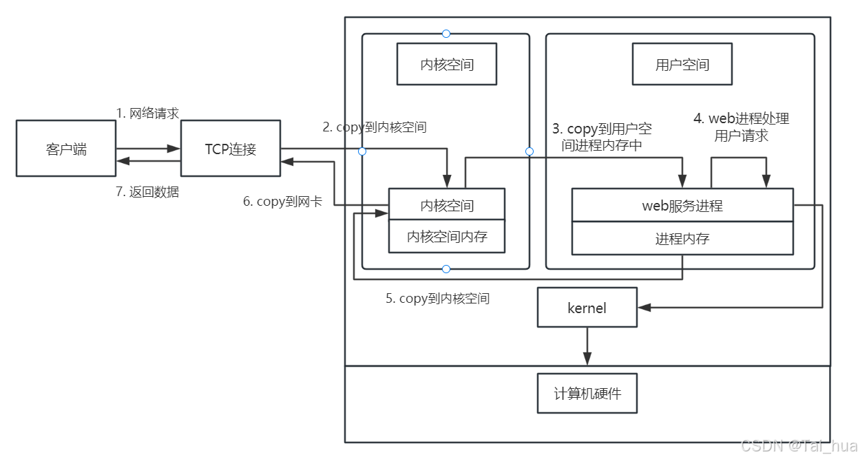 优点 :稳定缺点 :每个用户请求需要对应开启一个进程 , 占用资源较多,并发性差 , 不适用于高并发场景