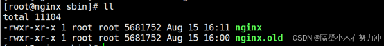 如果升级前里面存在两个nginx,后面升级命令执行后之前旧的master不会被回收,这是因为之前执行过curl -I localhost命令导致的,因此确保没有操作前里面只有nginx文件(我这个后面会报错)