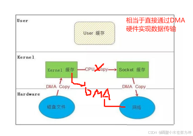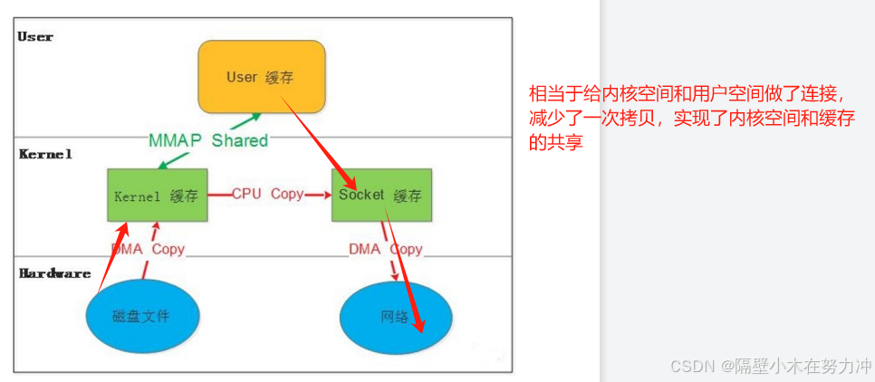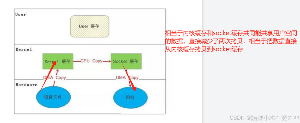 大量数据的拷贝,用户态和内核态的频繁切换,会消耗大量的 CPU 资源,零拷贝就是通过尽量避免拷贝操作来缓解 CPU 的压力。零拷贝并没有真正做 到“0”拷贝,它更多是一种思想