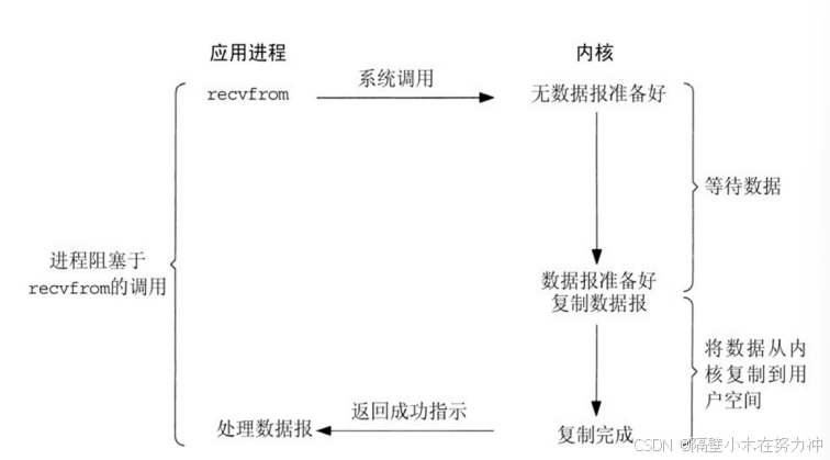 首先把整个I/O过程化为两个部分,一个数从磁盘获取数据,一个是把数据从内核空间复制到用户空间