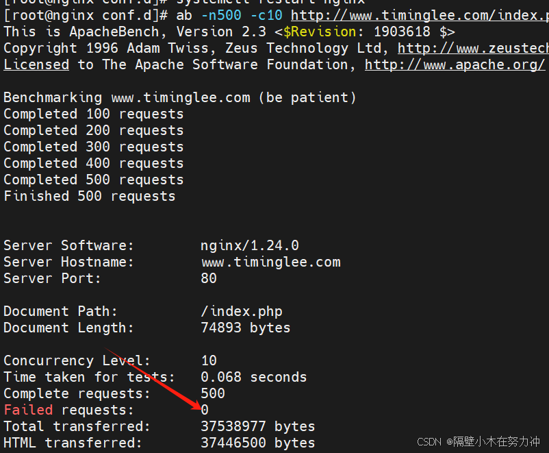 [root@nginx memcache-8.2]# ab -n500 -c10 http://www.timinglee.com/index.php