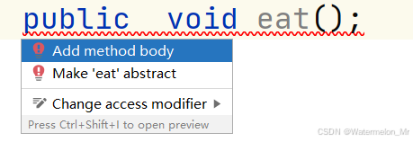 在定义抽象方法必须使用abstract关键字进行修饰,否则无法(编译报错)成为抽象方法