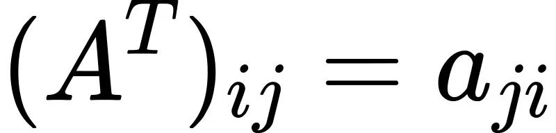 对于矩阵 A 中的任意元素 a_{ij} ,其转置矩阵 A^T 中对应的元素可以通过以下公式得到: