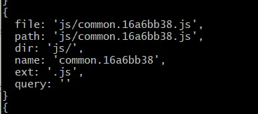 ``filename``` :类型:String|Function,设置压缩资源后的名称,默认值:[path].gz[query], [file]被替换为原始资产文件名。 [path]替换为原始资产的路径。 [dir]替换为原始资产的目录。 [name]被替换为原始资产的文件名。 [ext]替换为原始资产的扩展名。 [query]被查询替换。 下面用函数把各类的值都打印出来。