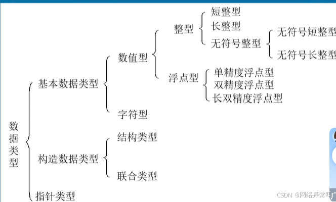 在C语言中,按被定义数据的性质、表达形式、占存储空间以及构造特点其数据类型分为: