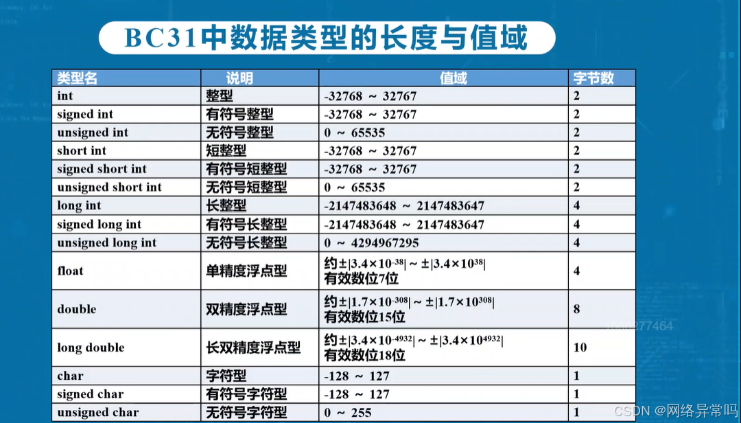 不同的差别就在于采用不同位数的二进制编码方式,占用不同的存储空间,就会有不同的数据类型范围。