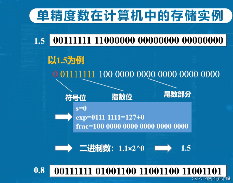 1.指数位全为0,这时浮点数的指数等于1-127(或者1-1023),尾数部分不再加上第一位的1,而是还原为0.xxxxxx的小数。这样做是为了表示士0,以及接近于0的很小的数字,