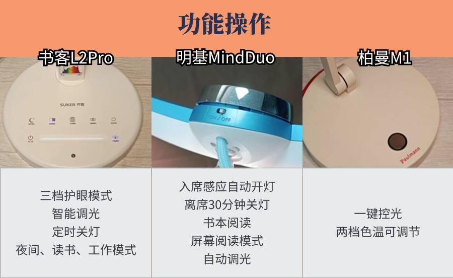 本次测试通过真实体验,测试各款护眼台灯具备的功能以及使用感受。作为千元级护眼台灯,柏曼M1的智能功能较少,仅在底座控制按钮上课进项两档色温和亮度调节,对于追求智能化的使用者来说较不适宜。