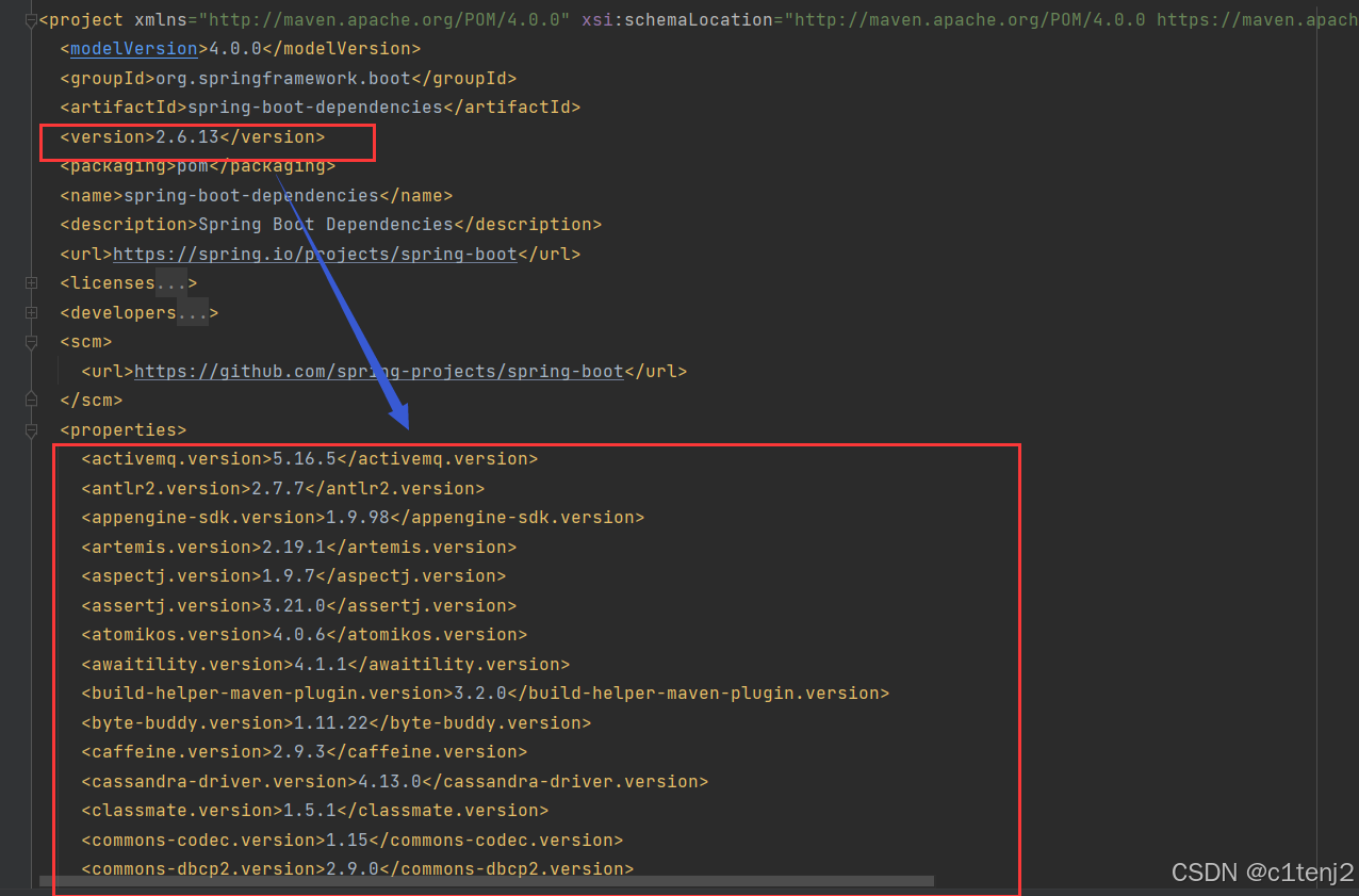 在这里有管理springboot的可选依赖,通过指定springboot的版本,这些依赖对应的版本可能大相径庭。