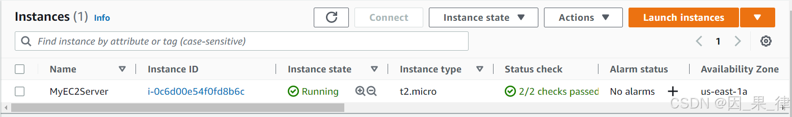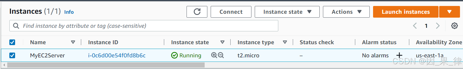 启动状态:你的实例正在启动,导航到左侧菜单中的“实例”页面,等待EC2实例的状态变为“运行中”。