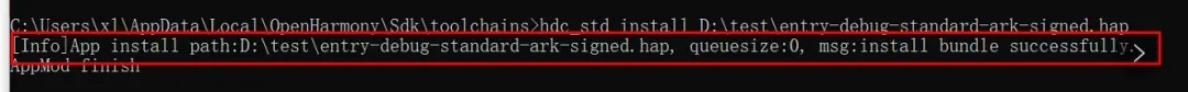 打开 OpenHarmony SDK 路径 \toolchains 文件夹下,执行如下 hdc_std 命令,其中 path 为 hap 的绝对路径。有如下信息,即表明安装成功。