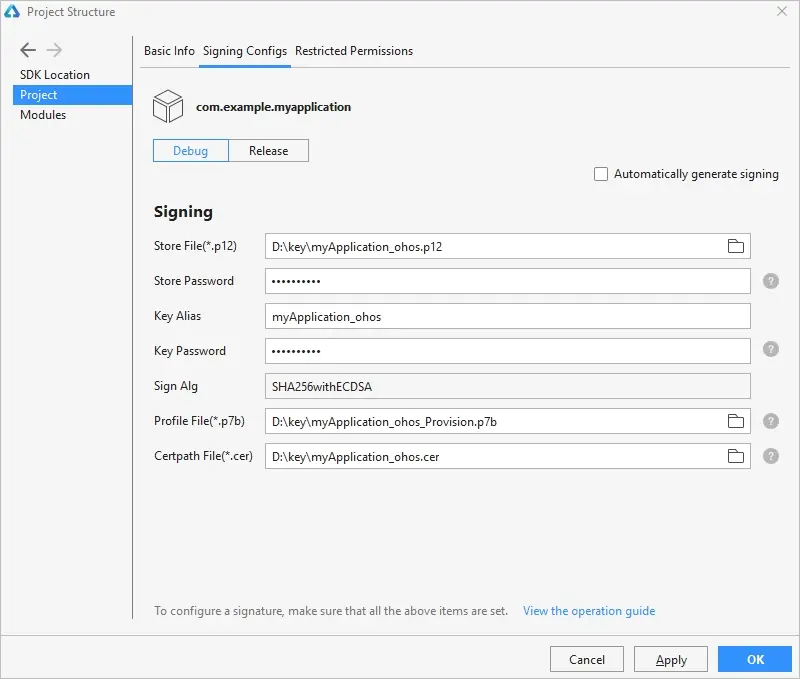 配置应用签名信息