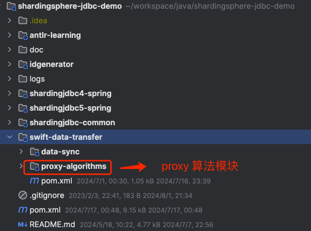 笔者将 proxy 算法模块也添加到了分库分表实战项目 shardingsphere-jdbc-demo 里,有兴趣的同学,可以看看这个项目。