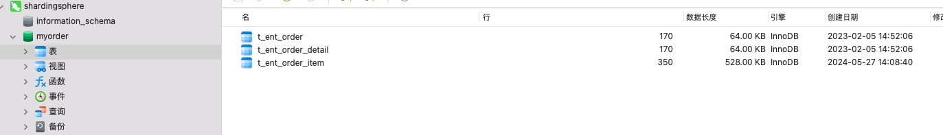 最后,我们启动 Proxy 服务 , 我们发现通过 MySQL Client 查询数据库时,出现了我们配置的订单库 : myorder ,以及订单库里的三个逻辑表 。如下图: